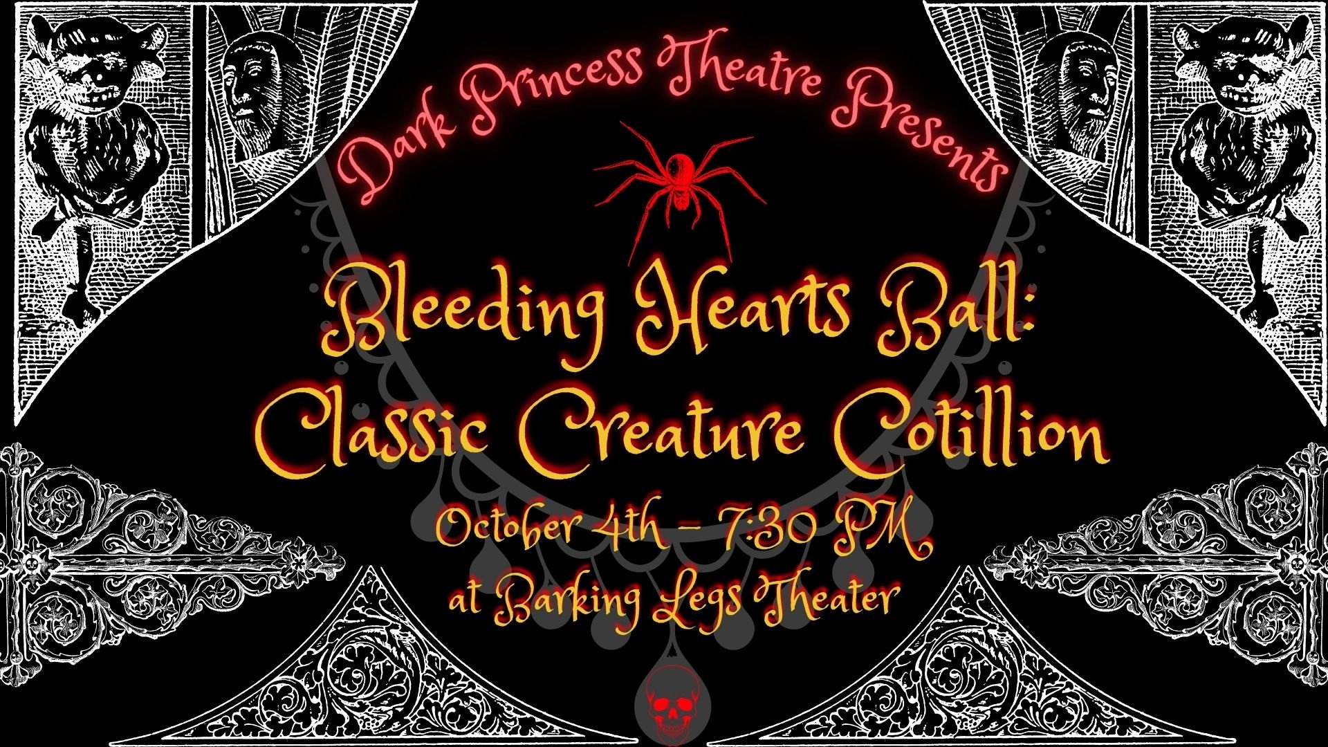 Bleeding Hearts Ball: Classic Creature Cotillion Saturday, October 4, 2025 7:30 PM 11:00 PM Barking Legs Theater 1307 Dodds Avenue Chattanooga, TN, 37404 United States (map) Google Calendar ICS Dark Princess Theatre returns with our annual Bleeding Hearts Ball! This year's theme is a Classic Creature Cotillion where you are invited to dance the night away dressed as your favorite movie monsters while our own cast of monsters entertain you! Get tickets