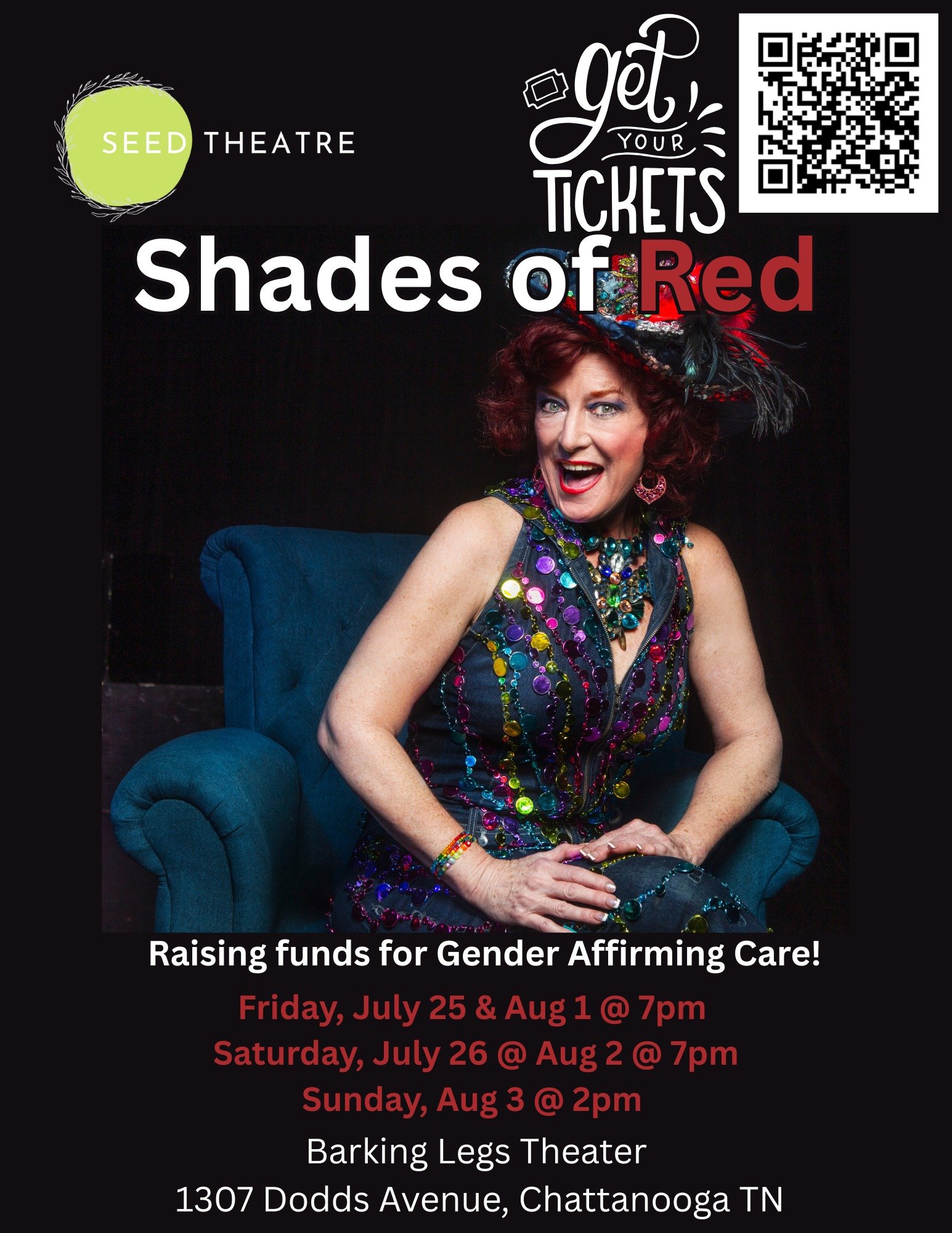This original one-woman show, created and performed by Chattanooga's own Wendy Pursley, brings to life a rotating cast of bold, hilarious, and heartwarming women who’ve been captivating audiences for over 25 years. Whether it’s the powerhouse vocals of Big Bette, the razor-sharp wit of Martha Crouch, or the outrageous visions of Madame Irene — each “shade” tells a story full of heart, humor, and fierce Southern soul.